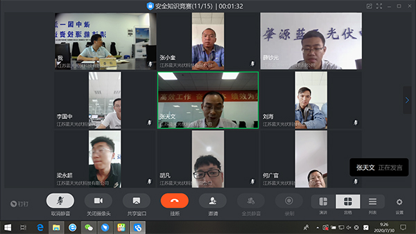 2020年7月30日,藍(lán)天公司通過(guò)視頻連線形式,組織各運(yùn)維電站進(jìn)行安全知識(shí)競(jìng)賽活動(dòng)。 此次活動(dòng)旨在貫徹 “安全第一,預(yù)防為主,綜合治理”的安全生產(chǎn)方針,提高運(yùn)維員工的安全生產(chǎn)意識(shí),推動(dòng)公司安全文化建設(shè),促進(jìn)安全生產(chǎn)工作進(jìn)一步規(guī)范化。公司運(yùn)維事業(yè)部與總裁工作部進(jìn)行了周密組織,各電站員工進(jìn)行了積極備戰(zhàn)。 競(jìng)賽由總裁工作部主持,公司業(yè)務(wù)分管領(lǐng)導(dǎo)應(yīng)邀擔(dān)任評(píng)委,競(jìng)賽在熱烈積極的氣氛中進(jìn)行。經(jīng)過(guò)緊張的必答題和搶答題環(huán)節(jié),肇源電站后來(lái)居上,勇奪第一名,南寧電站和吳忠電站分獲二、三名。 與會(huì)公司領(lǐng)導(dǎo)對(duì)競(jìng)賽活動(dòng)的圓滿舉行表示祝賀,也指出了活動(dòng)中暴露出的個(gè)別員工安全知識(shí)不扎實(shí)的問(wèn)題,希望全體員工以此為契機(jī),加強(qiáng)安全生產(chǎn)知識(shí)的學(xué)習(xí),持續(xù)做好安全生產(chǎn)工作。