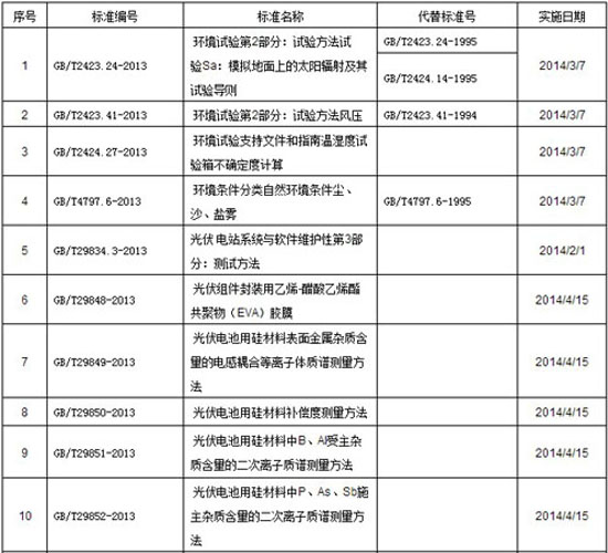 國家質(zhì)量監(jiān)督檢驗(yàn)檢疫總局、國家標(biāo)準(zhǔn)化管理委員會(huì)發(fā)布2013年光伏行業(yè)新通過的國家標(biāo)準(zhǔn)及備案的國家標(biāo)準(zhǔn)。