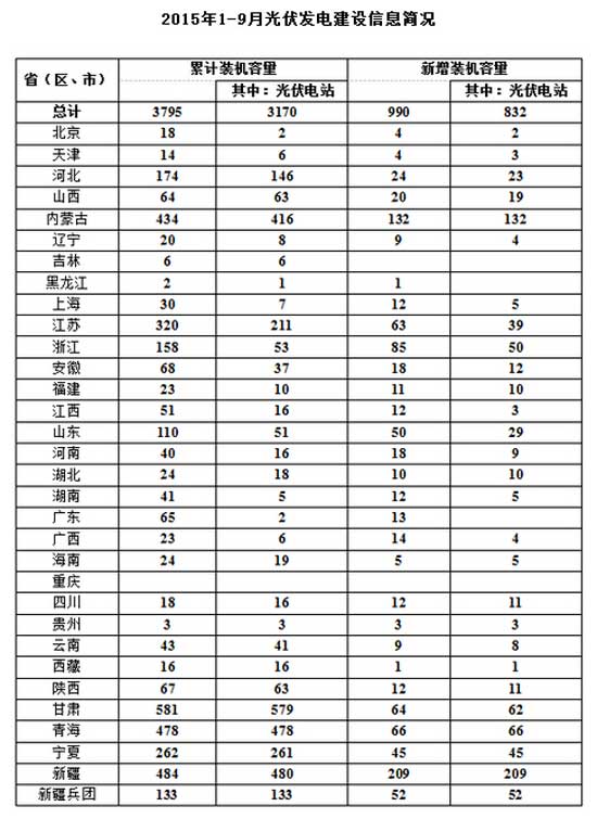 能源局:2015年1-9月光伏發(fā)電建設(shè)簡(jiǎn)況