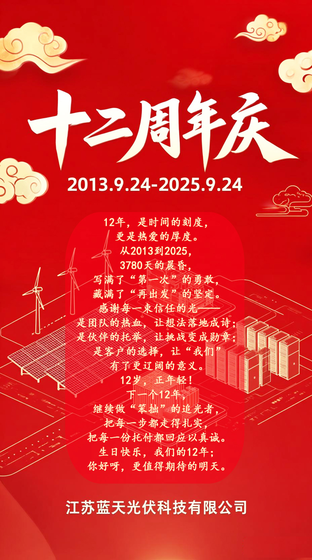 熱烈祝賀江蘇藍(lán)天成立十二周年!
