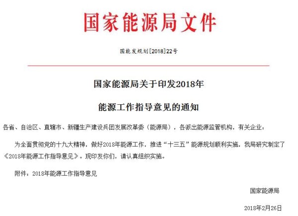 原標(biāo)題:國家能源局關(guān)于印發(fā)2018年能源工作指導(dǎo)意見的通知