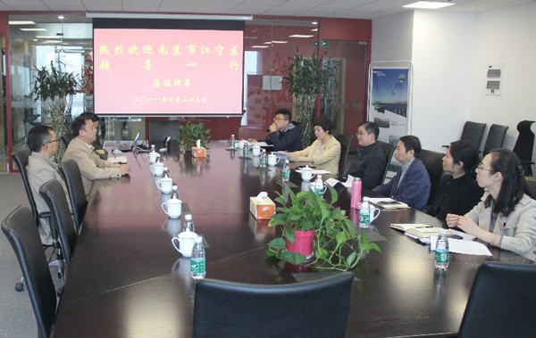 江寧區(qū)常務(wù)副區(qū)長李濱、副區(qū)長周育剛一行蒞臨藍(lán)天公司考察工作