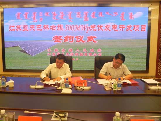江蘇藍天巴林右旗500MWp光伏發(fā)電開發(fā)項目簽約儀式在巴林右旗舉行