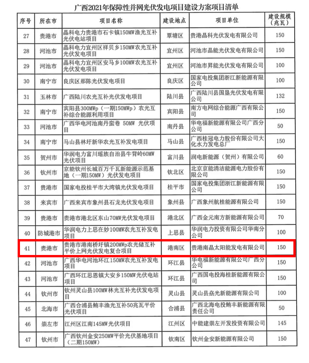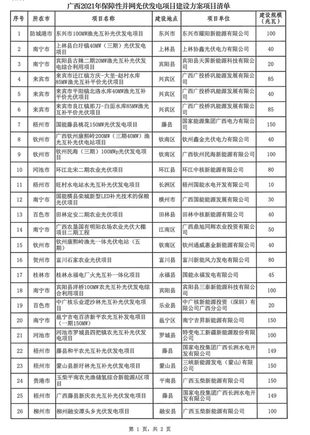 廣西2021光伏保障性規(guī)模項目名單出爐!